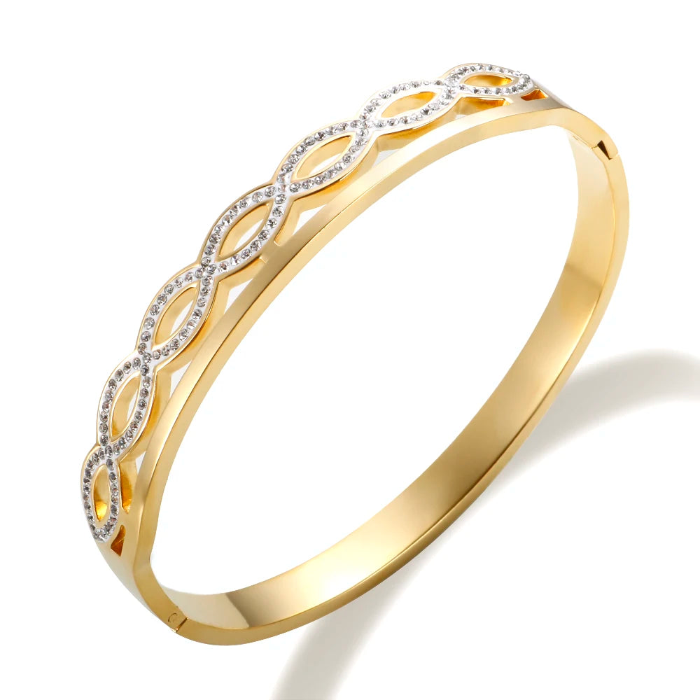 Zircon Infinity Bangle Gold Plated Hollow Cross Luxury Crystals Bracelets Fine Jewelry